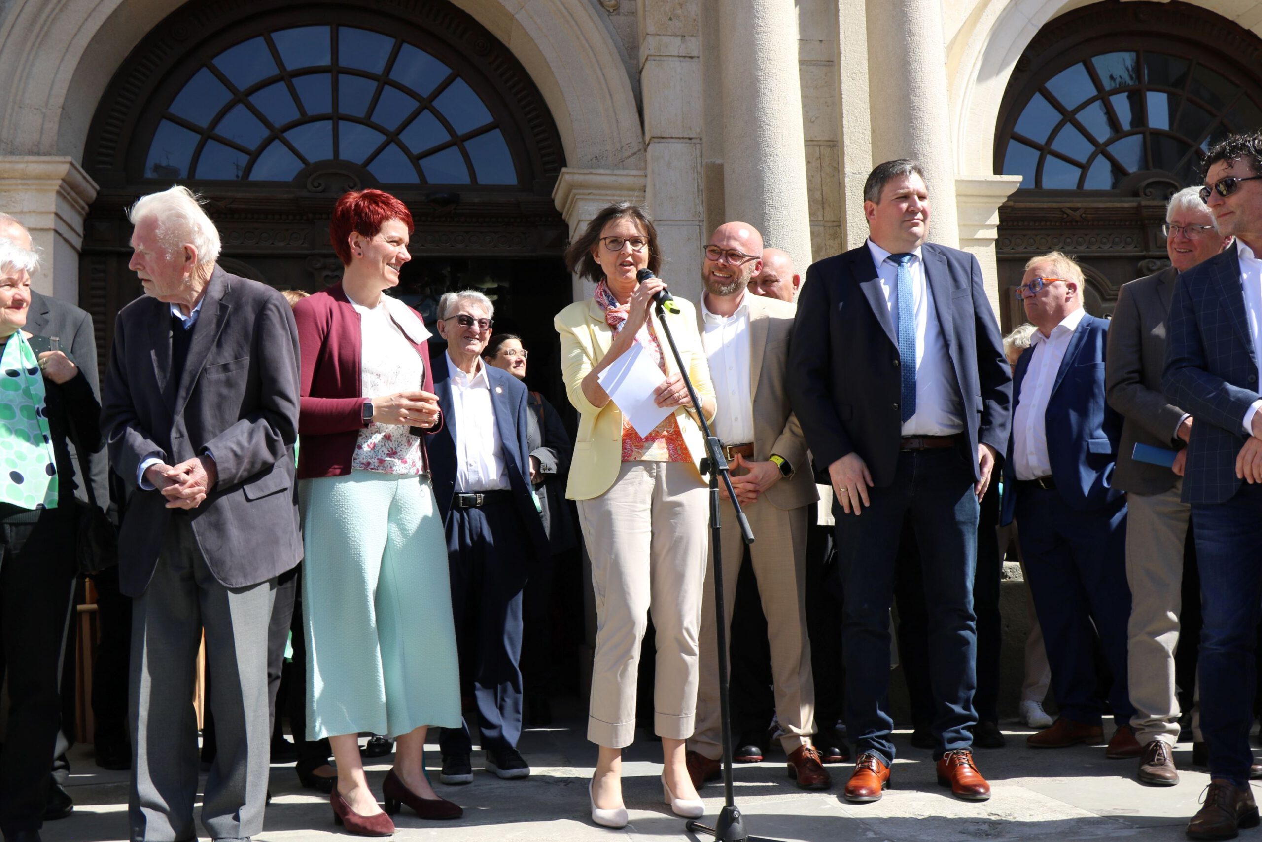 Die neue Vorsitzende Ulrike Egger dankte besonders auch der Familie Grotz für ihre Unterstützung. „Kultur verbindet Menschen“, betonte sie – ein Motto, das Grotz 33 Jahre in seinem Ehrenamt mit Leben gefüllt habe. Lauingens Bürgermeisterin Katja Müller würdigte Initiativen wie das weltgrößte Osternest oder „Schwätz m´r Schwäbisch“, die durch Grotz einen festen Platz im Lauinger Kulturkalender fanden. Landrat Markus Müller zitierte Johannes Rau: „Kultur ist nicht das Sahnehäubchen auf dem Kuchen, sondern die Hefe im Teig.“ Genau das sei Grotz für Lauingen gewesen – die Hefe, die die Kultur habe aufgehen lassen.