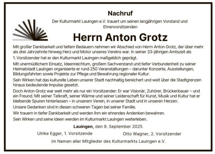27.08.2025: In ehrendem Gedenken an Herrn Anton Grotz